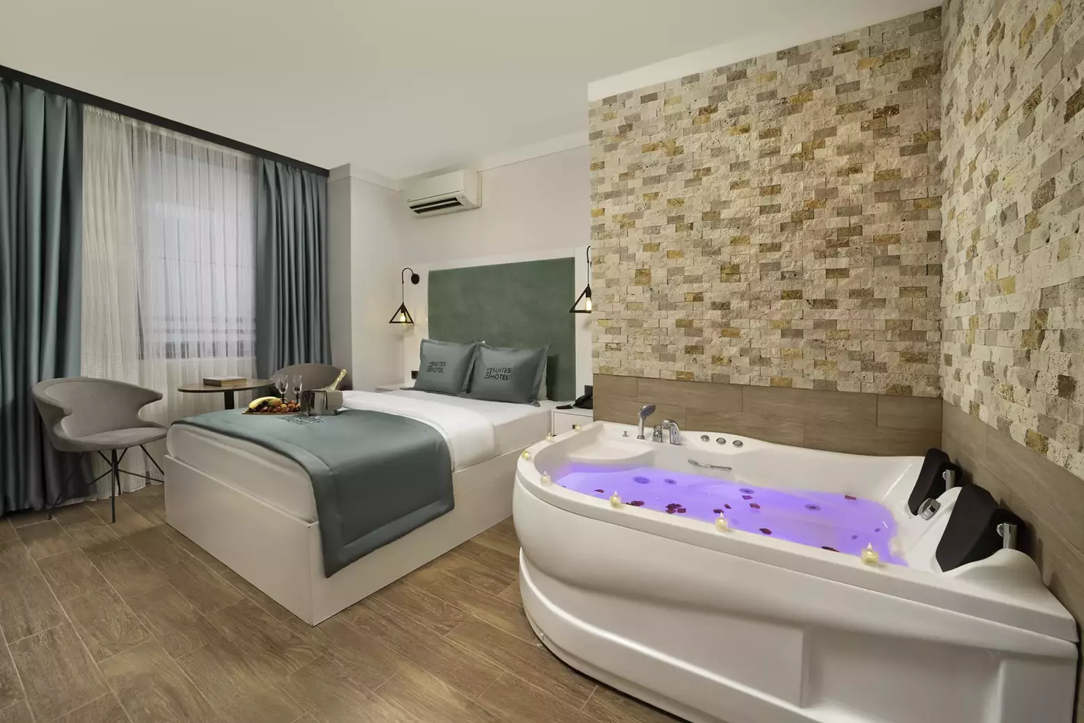 Suit Olarak hazırlanmış olan dairemizde ihtiyaç duyabileceğiniz, tüm gereçler fiyata dahil olarak sunulmuştur.